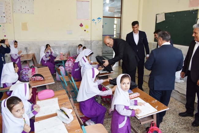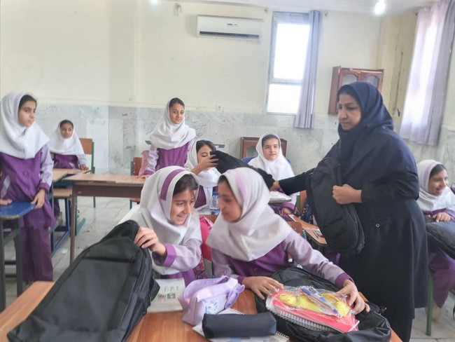 توزیع بستههای لوازم التحریر بانک ملت در مدارس گچساران+تصاویر