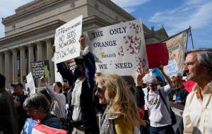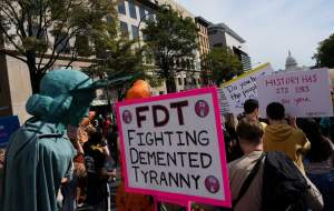 به گزارش کبنا نیوز، روز شنبه ۱۸ اکتبر، بیش از دو هزار و ۶۰۰ تجمع اعتراضی در ایالتهای مختلف آمریکا برگزار شد. معترضان با پوشیدن لباسهایی به رنگ پرچم ملی و حمل پلاکاردهایی با شعار «نه به پادشاه»، مخالفت خود را با آنچه «ریاستجمهوری امپراتوری» ترامپ مینامند، اعلام کردند.